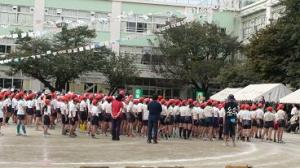 全校児童が集合!100名×6学年でだいたい600名くらい(区内でも多いほうです)。