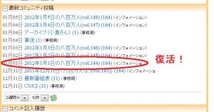 元日の「八百万人なう」(お知らせ)が、「インフォメーション」のコミュニティから消えてしまった件、解決しました!