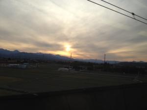 美しい夕日に送られて、帰宅中。